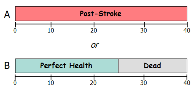 “What portion of your current life expectancy of 40 years would you give up to improve your current health state (stroke) to ‘perfect health’?”