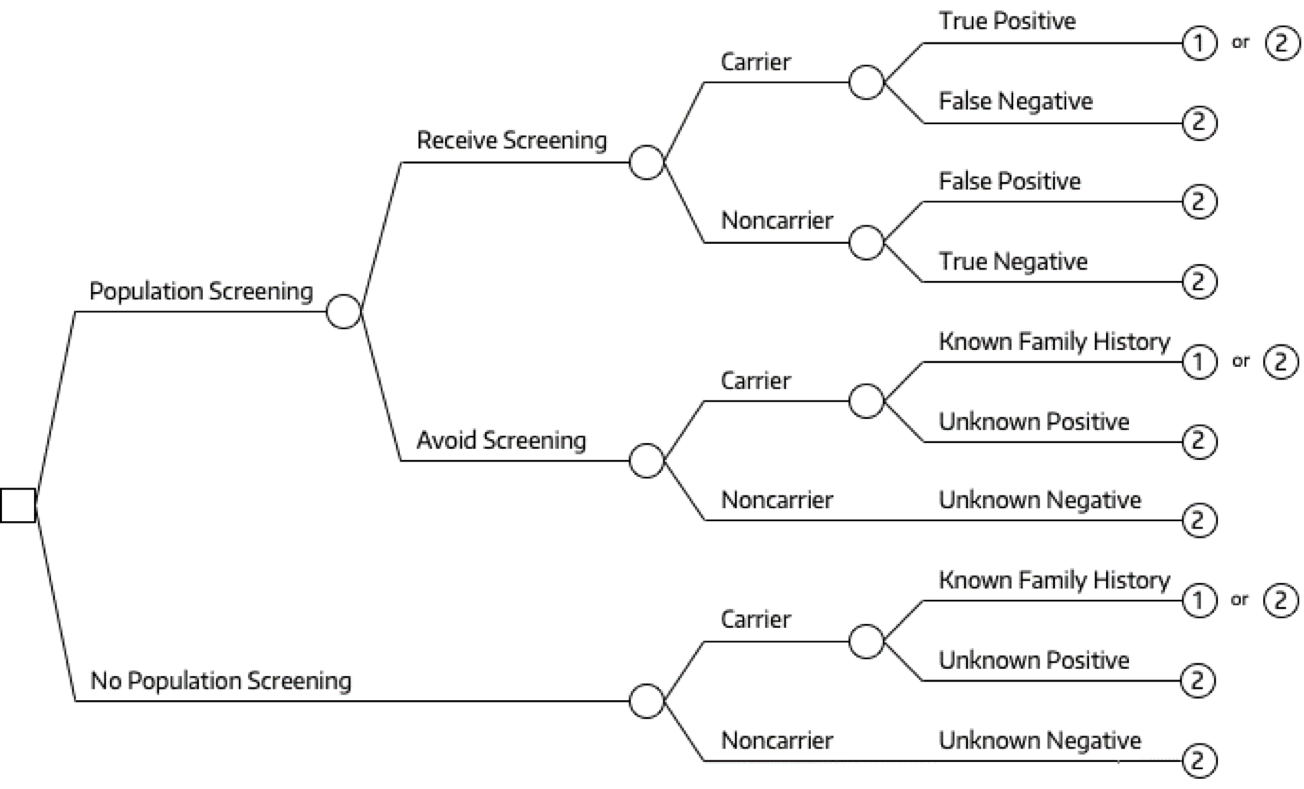 These disease states represent the possible states or consequences of strategies or options under consideration.